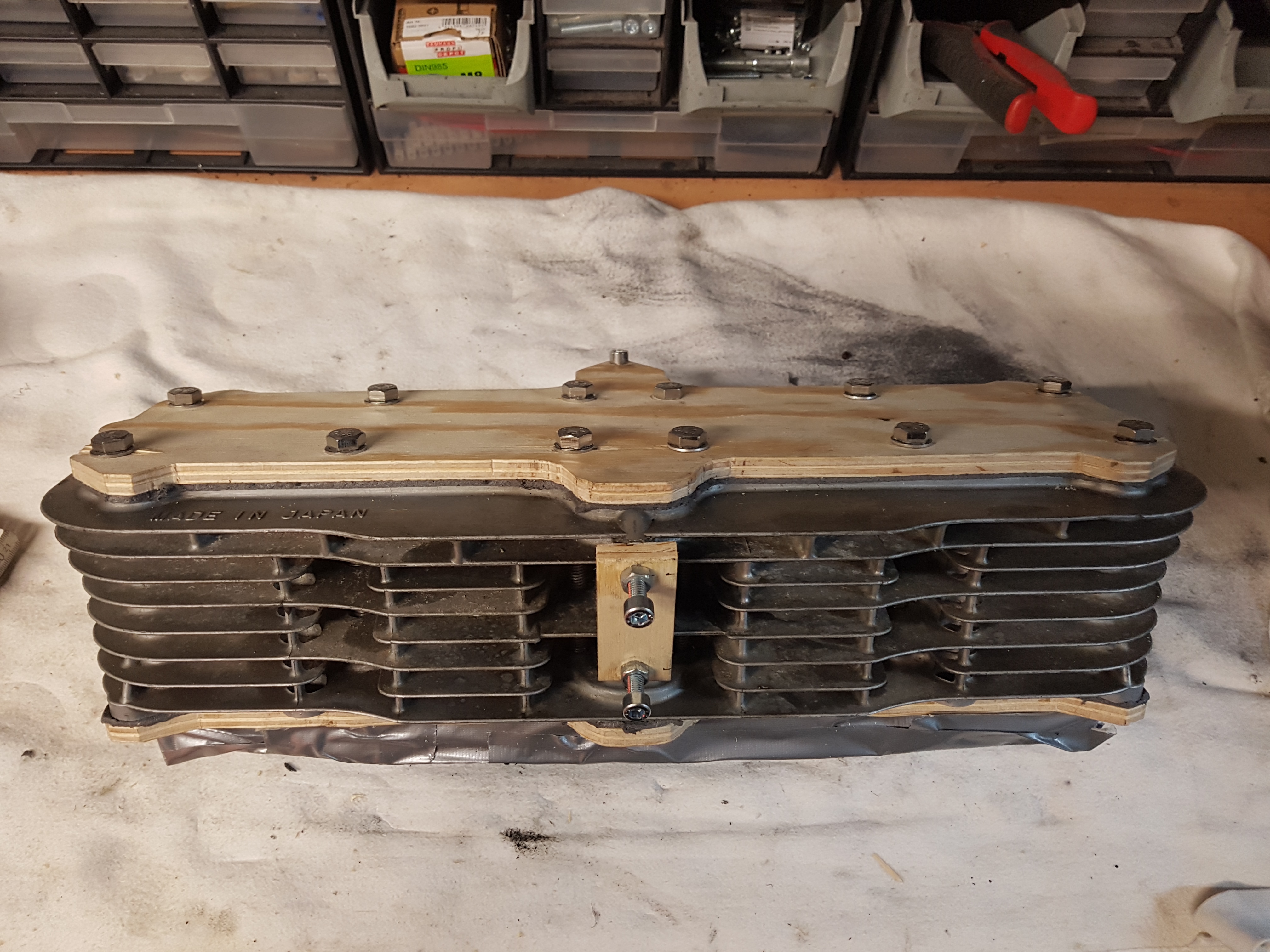 ich habe erst einmal den Zylinder abgedichtet und morgen geht er zum Strahlen. Ich hoffe ich habe alles gut abgedichtet.