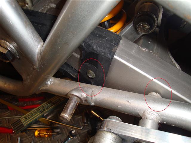 So sieht das ursprünglich aus, mit der SRAD Prismenführung auf der Schwinge: