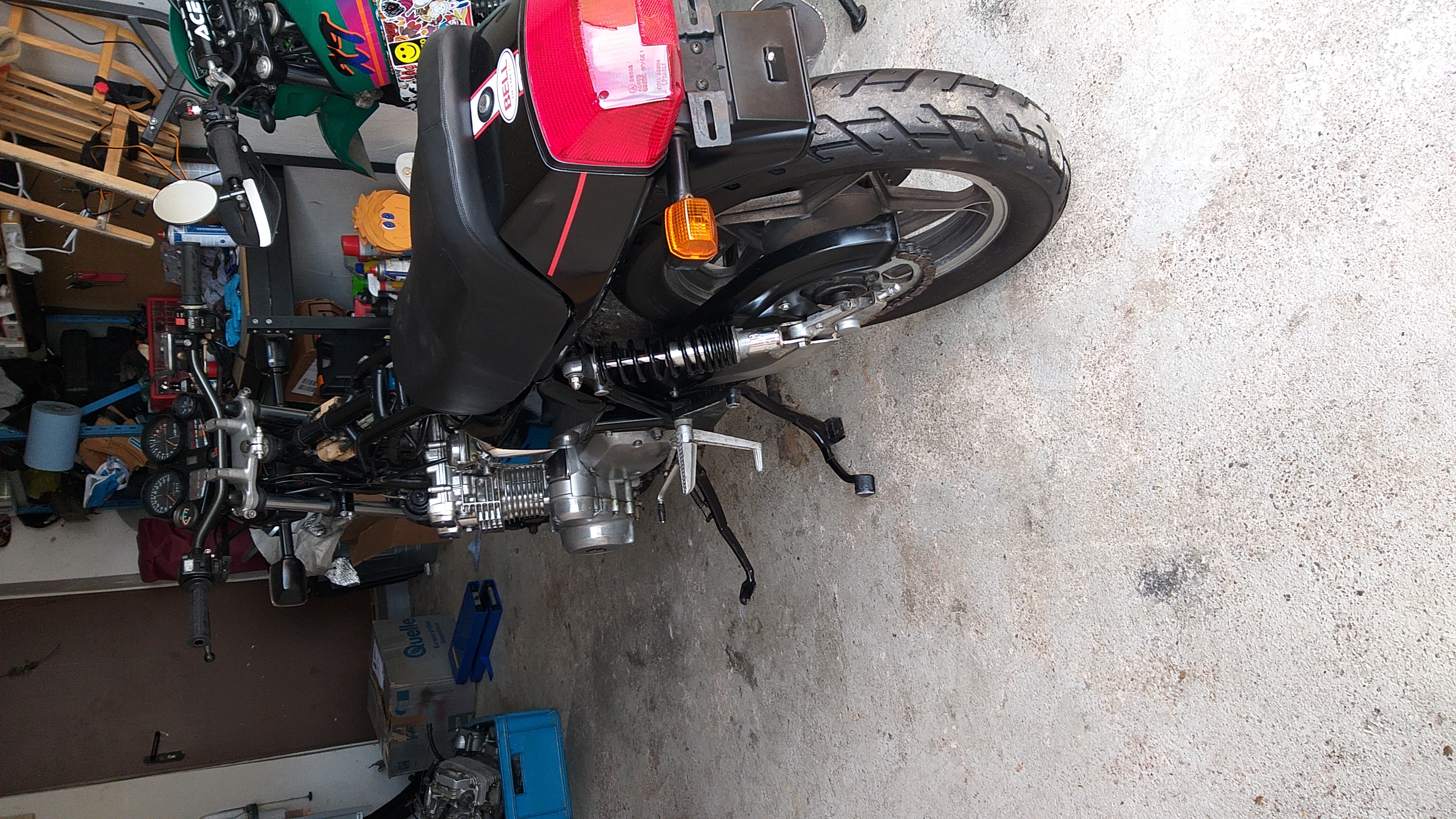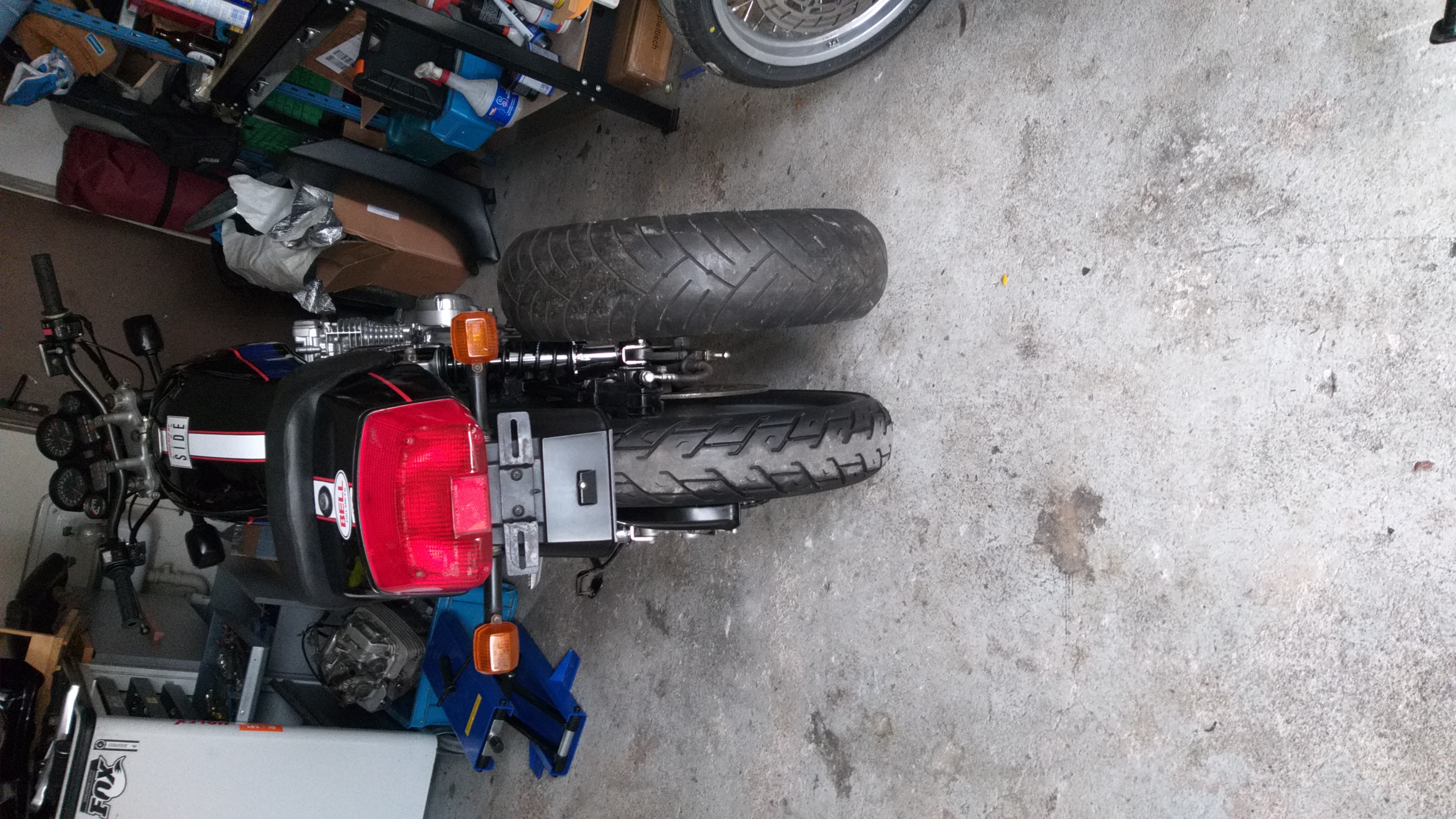 evtl hilft es dir ja weiter, so hat es mein Vorbesitzer gelöst mit der original Schwinge und gu74 Bremse hinten