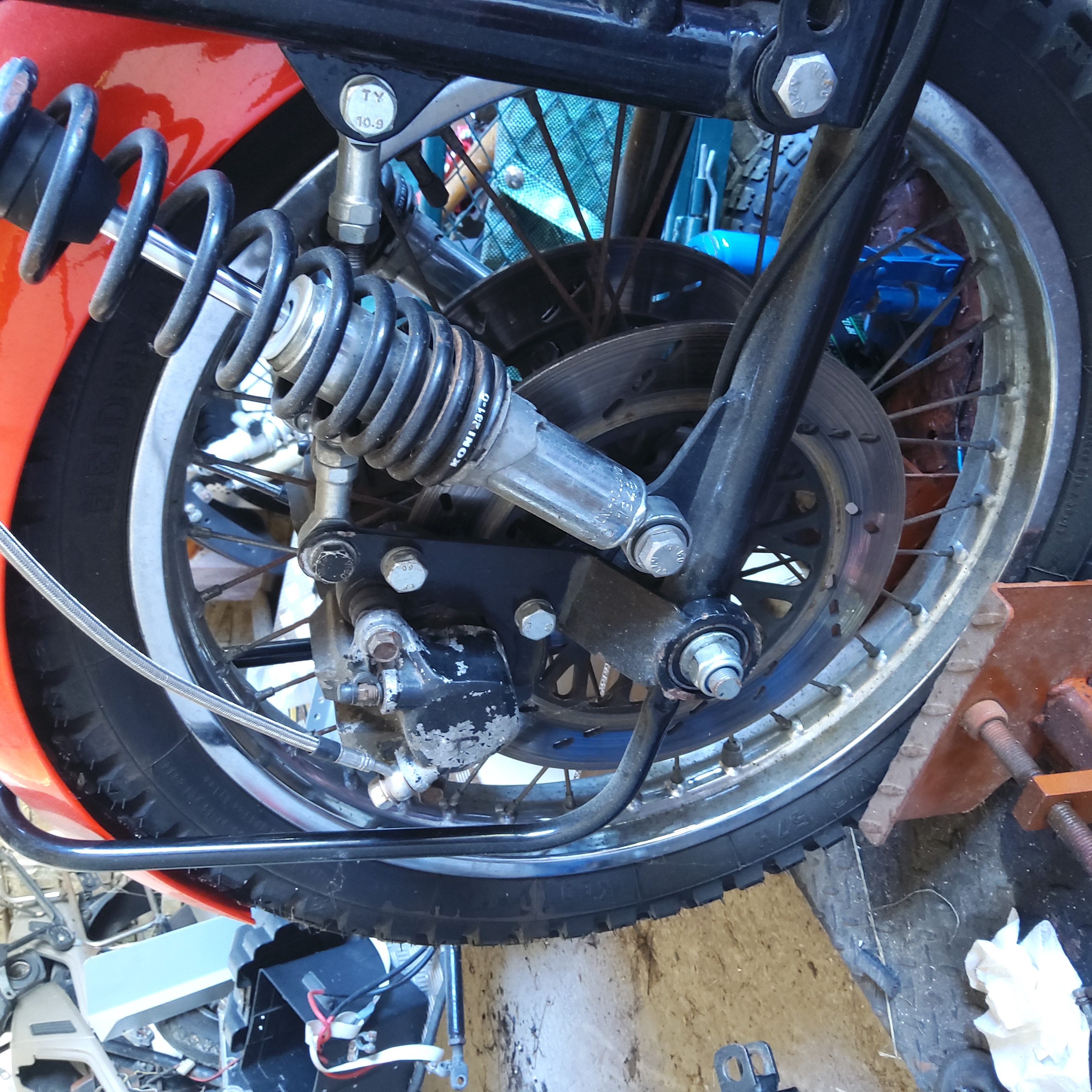 Moin, zur besseren Visualisierung mal 2 Bilder, das ganze betrifft mein Gespannprojekt. Die Felge ist eine von einer GSX 750 E wegen vorgeschriebener Speichenräder im Gespann, ist aber von den Daten identisch mit der Katanafelge. Die Katanabremsscheibe hat 28cm und einen versatz von 2cm, gerade ausgemessen. Ich würde da jetzt gerne eine größere Scheibe und eine größere Zange einbauen da die derzeit eingebaute Katanabremse total überfordert ist und ich nur schätzen kann wann das Gerät zum stehen kommt.