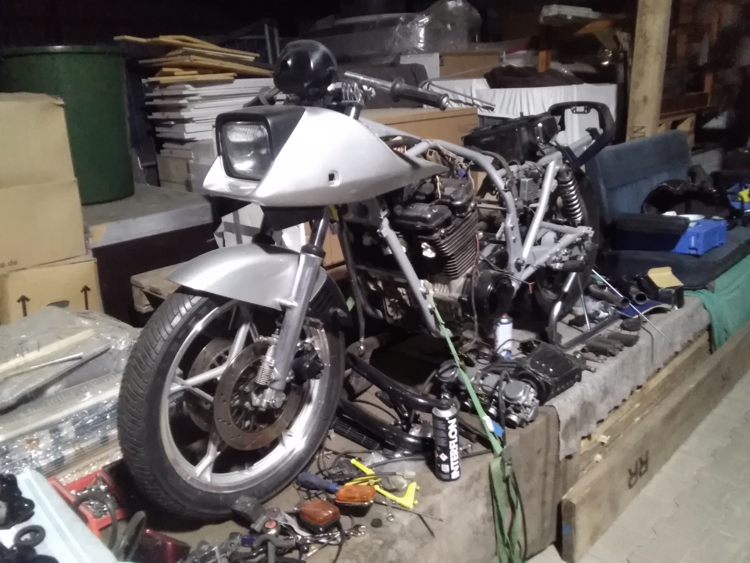 Es geht voran. Bin dabei, eine 11er Originale für mich bauen. Leider musste ich erstmal den EF Motor rein hängen, weil der 11er Originale noch auf der Werkbank liegt. Bis zum DT - Treffen soll sie jedenfalls fertig sein. Aber es ist schon komisch, sie ist noch nicht ansatzweise fertig, und schon denke ich über dicke Speichenräder, anderen Auspuff nach