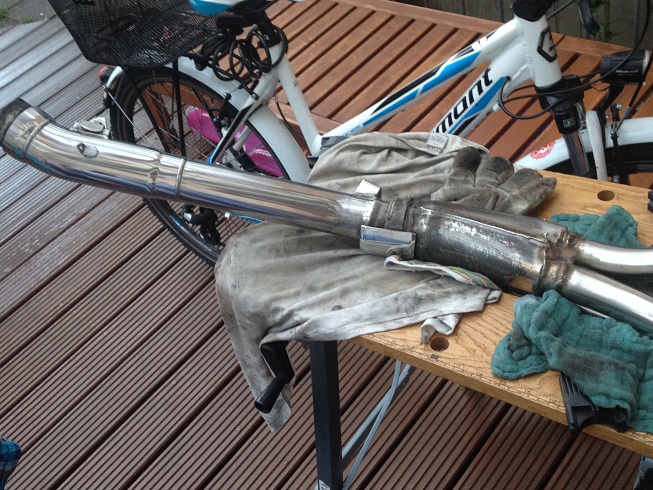 Als nächstes fiel ich über die Auspuffanlage her. Die meiste Arbeit verursache die Krümmeranlage