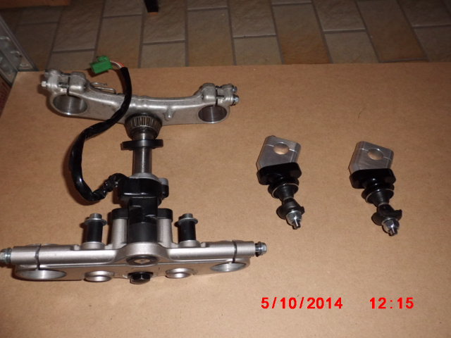 Gabelbrücke und meine neuen Lenkerklemmböcke liegen auch schon starbereit.