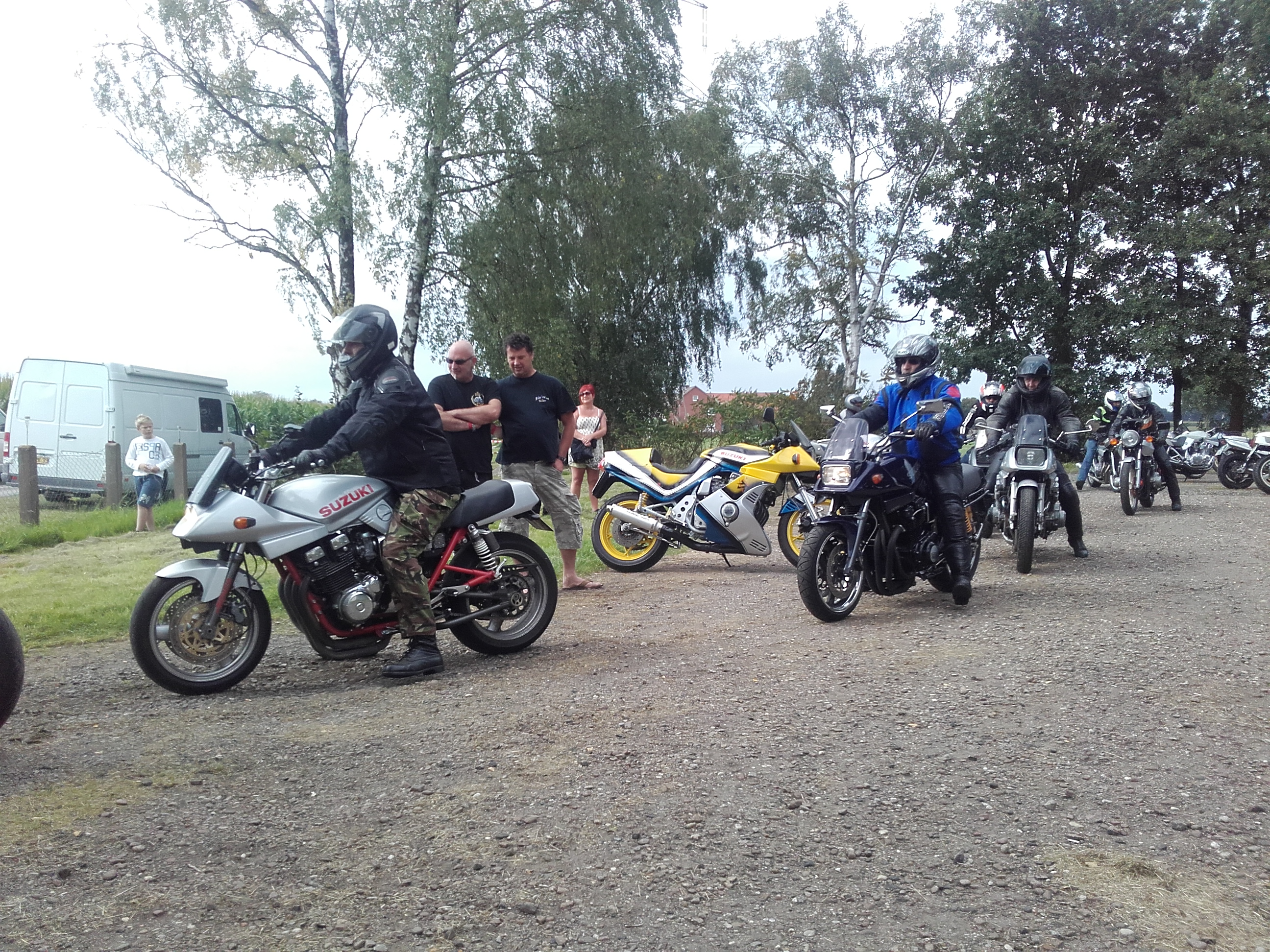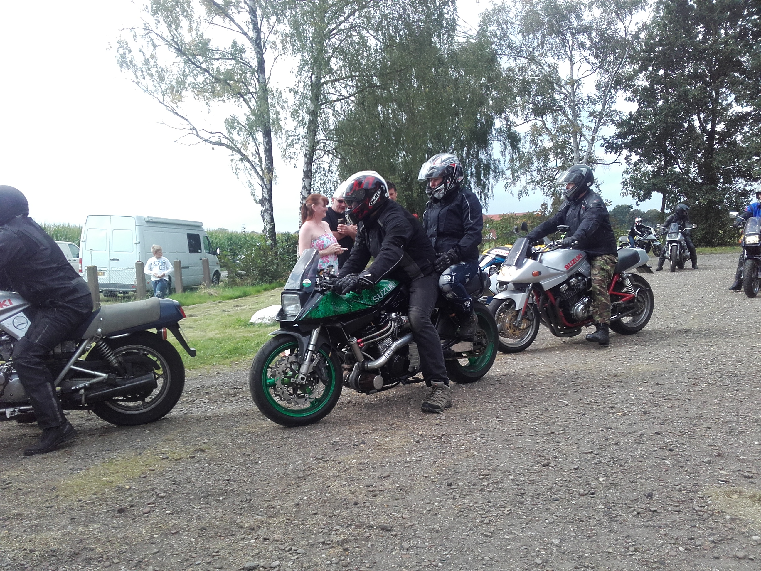 verdammt, hat wieder nich geklappt mit dem komplett trockenen Katanatreffenwochenende seit 2012, kurz nach dem abrollen vom Platz ein Regenschauer und 15Km nasse Straße.