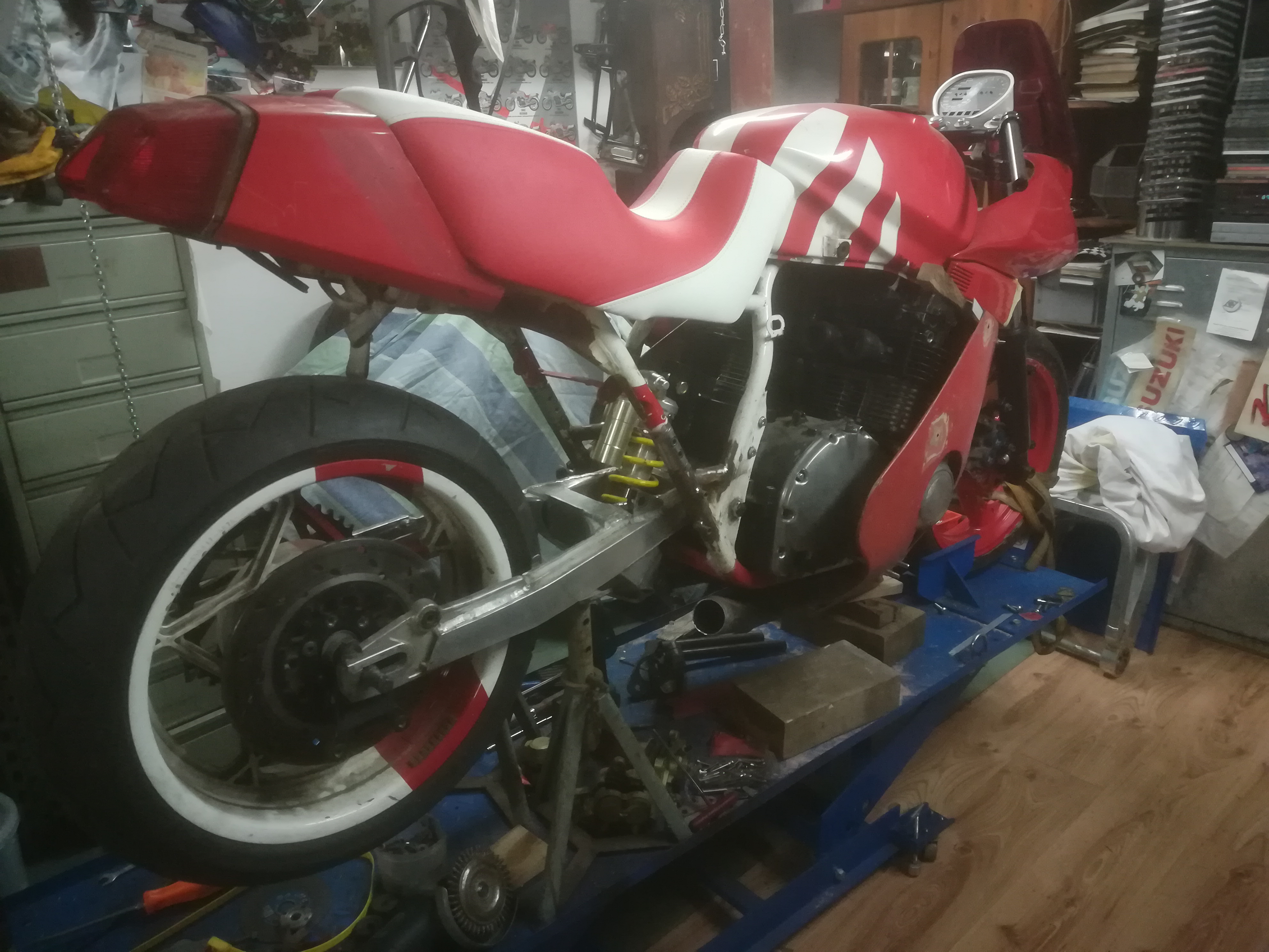 Nee, mit der 750 I. ger werde ich definitiv nicht zum Treffen fahren. Ich werde sie nochmal im original Rot lackieren lassen, dann kommen die weißen Schriftzüge rauf, und dann steht sie zum Verkauf. Deswegen baue ich wieder an meiner ro /we., um mit der zu fahren. Hab schon ein 11Ef Motor gekauft, der soll noch rein, den Auspuff muss wieder zusammen setzen und dann wäre ja noch die Verkleidung