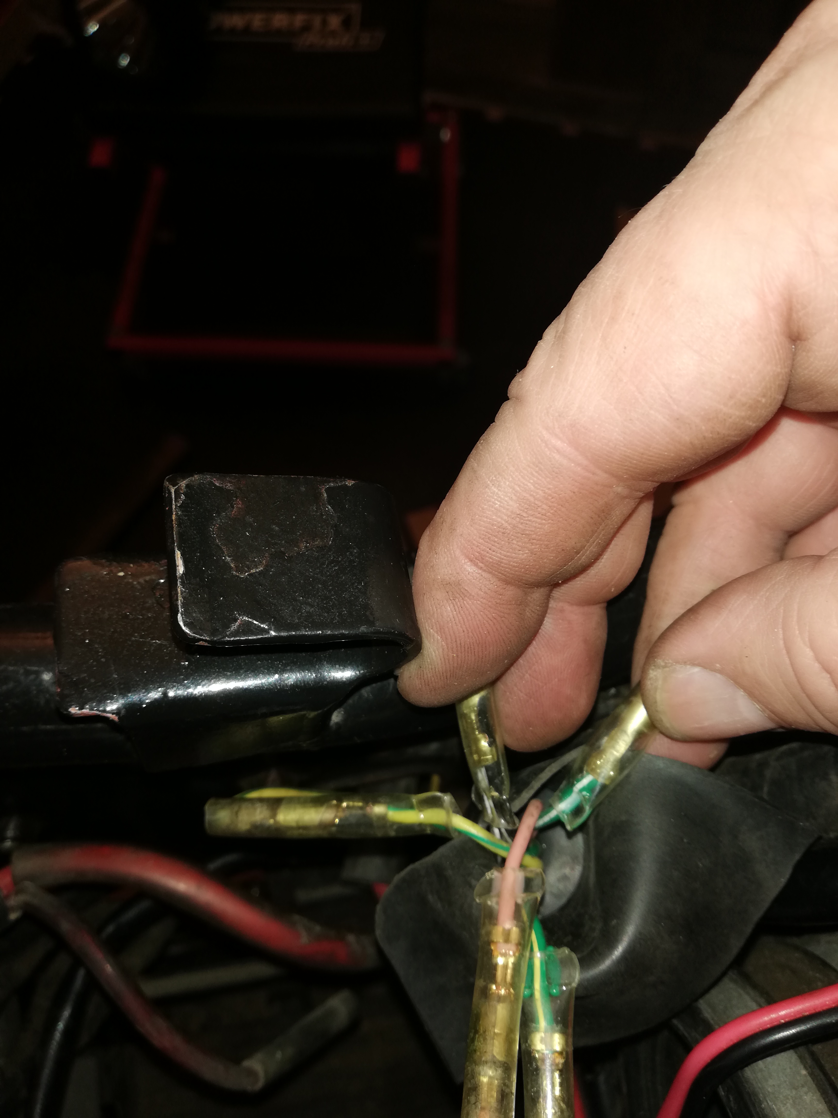 die Kabel kommen aus dem Hauptkabelbaum hinten im Batteriekasten raus. Zu der Zeit hatten die eigentlich keinen Schalter am Seitrnständer sondern die doppelte Feder.