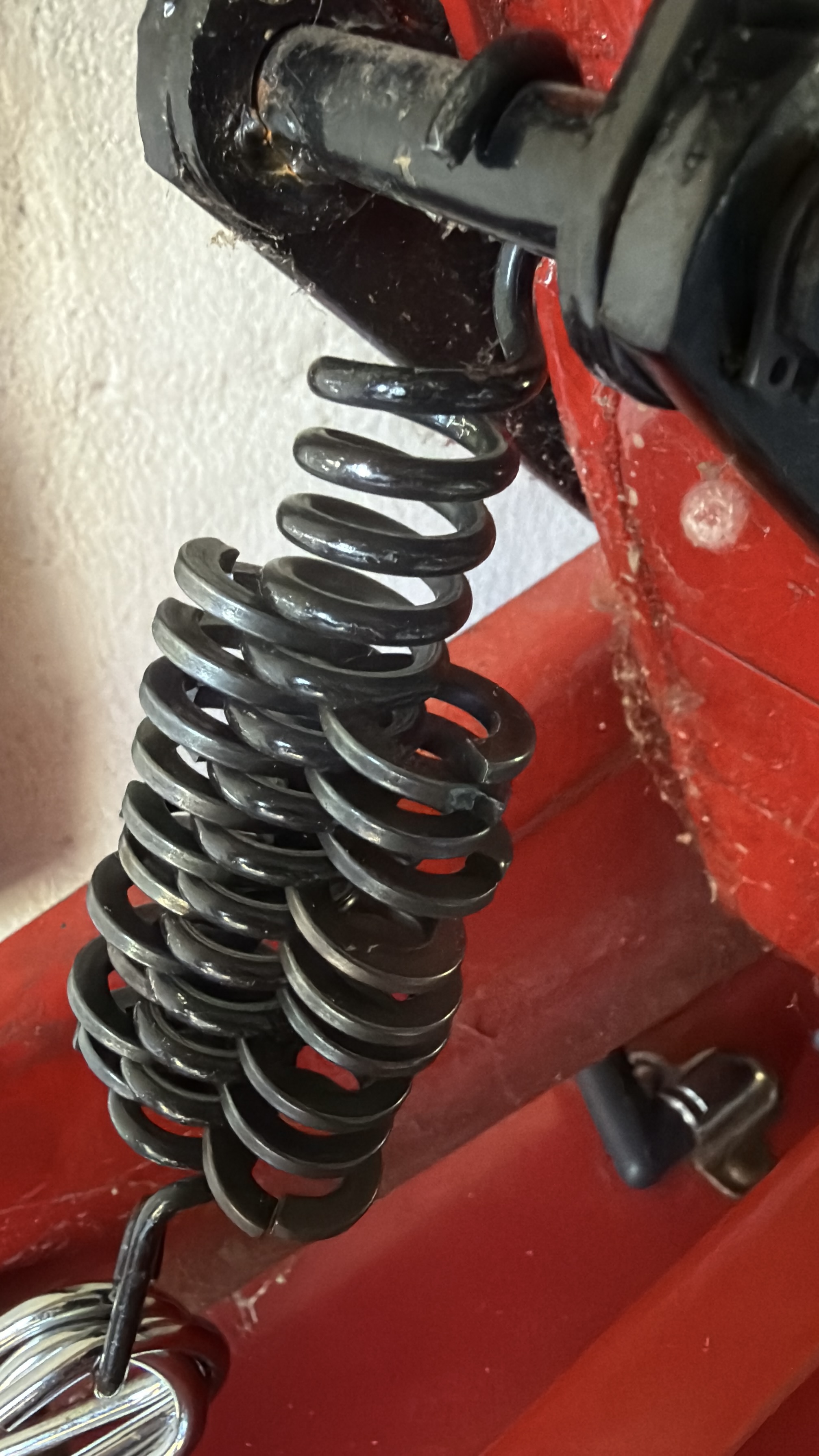 Ich fand den Tip, zwiscn die einzelnen Windungen Beilegscheiben zu legen und die Feder so zu "längen". Dazu die Feder im Schraubstock hin und her biegen. Ich dachte mir das muss einfacher gehen. Da ich immer gerne mit einem Wagenheber arbeite