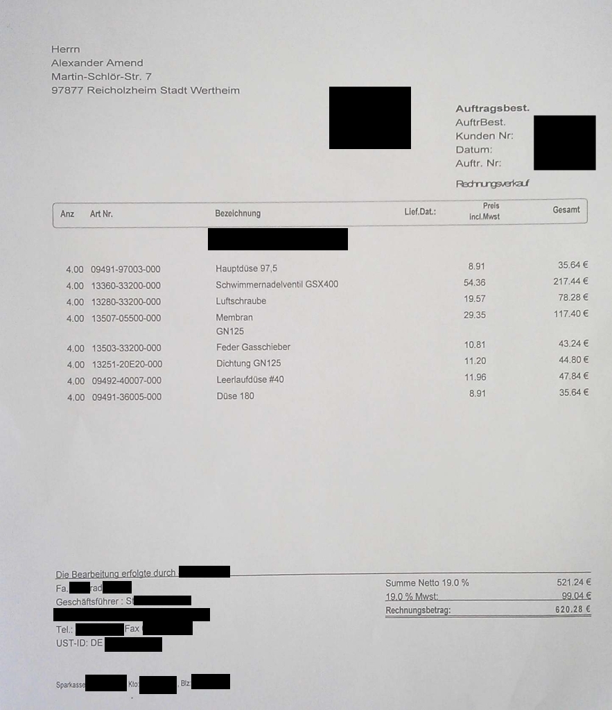 Hier mal ein vergleich meiner Bestellung zum Freundlichen.