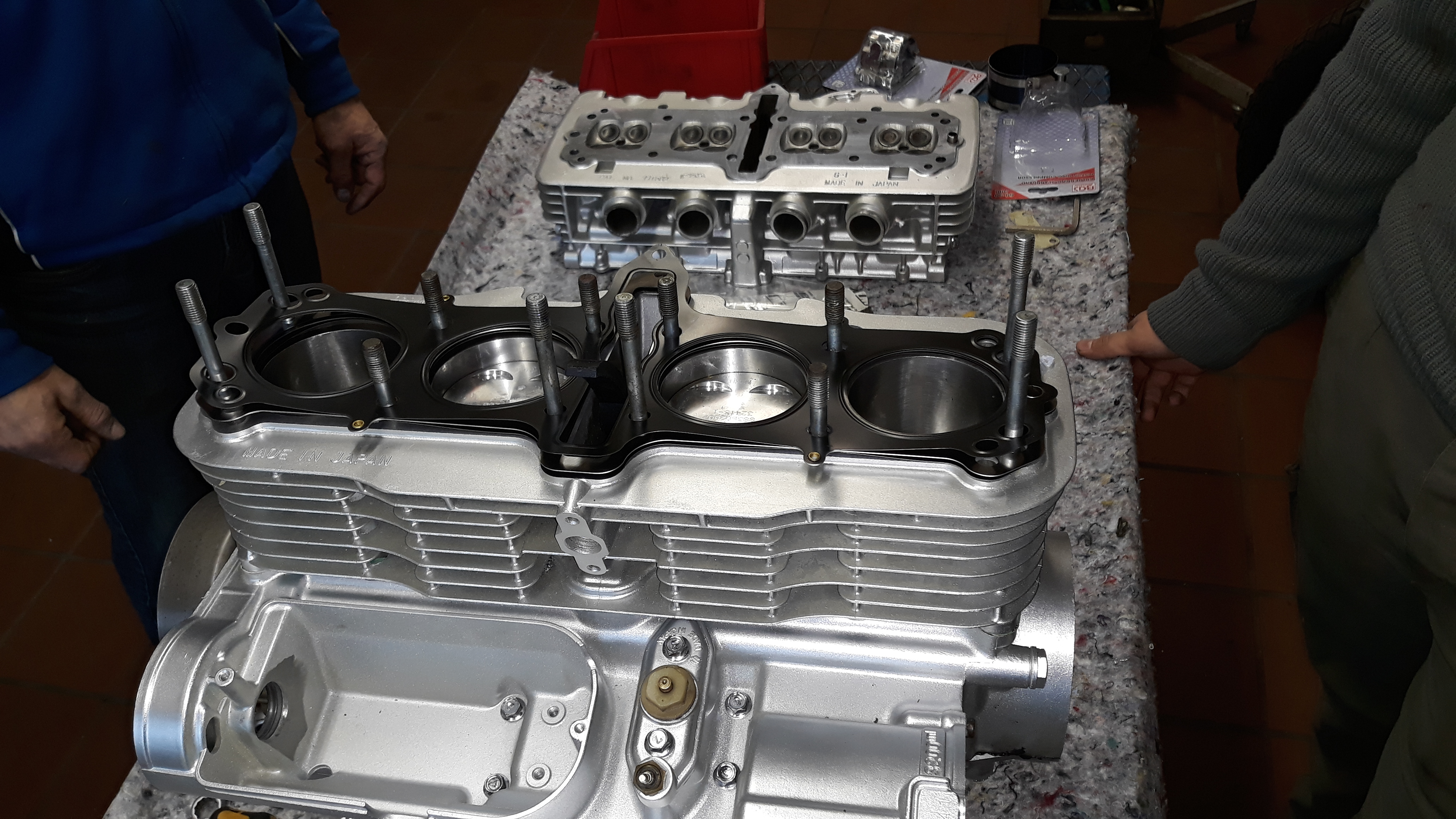 Neue Kolben, Kurbelwelle wuchten, Zylinder planen, alles strahlen und lackieren.