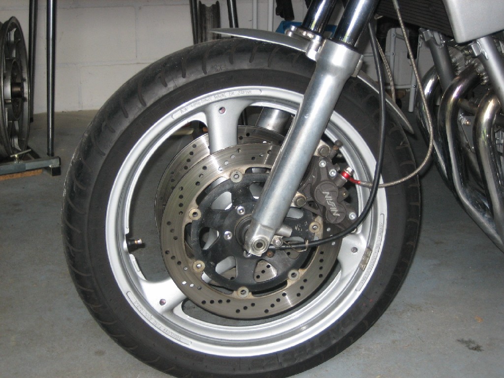 Ich habe nun eine Bremszange einer GSX 750 F, Bj. 95, montiert.