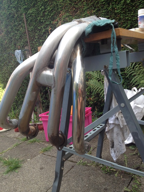 Als nächstes fiel ich über die Auspuffanlage her. Die meiste Arbeit verursache die Krümmeranlage