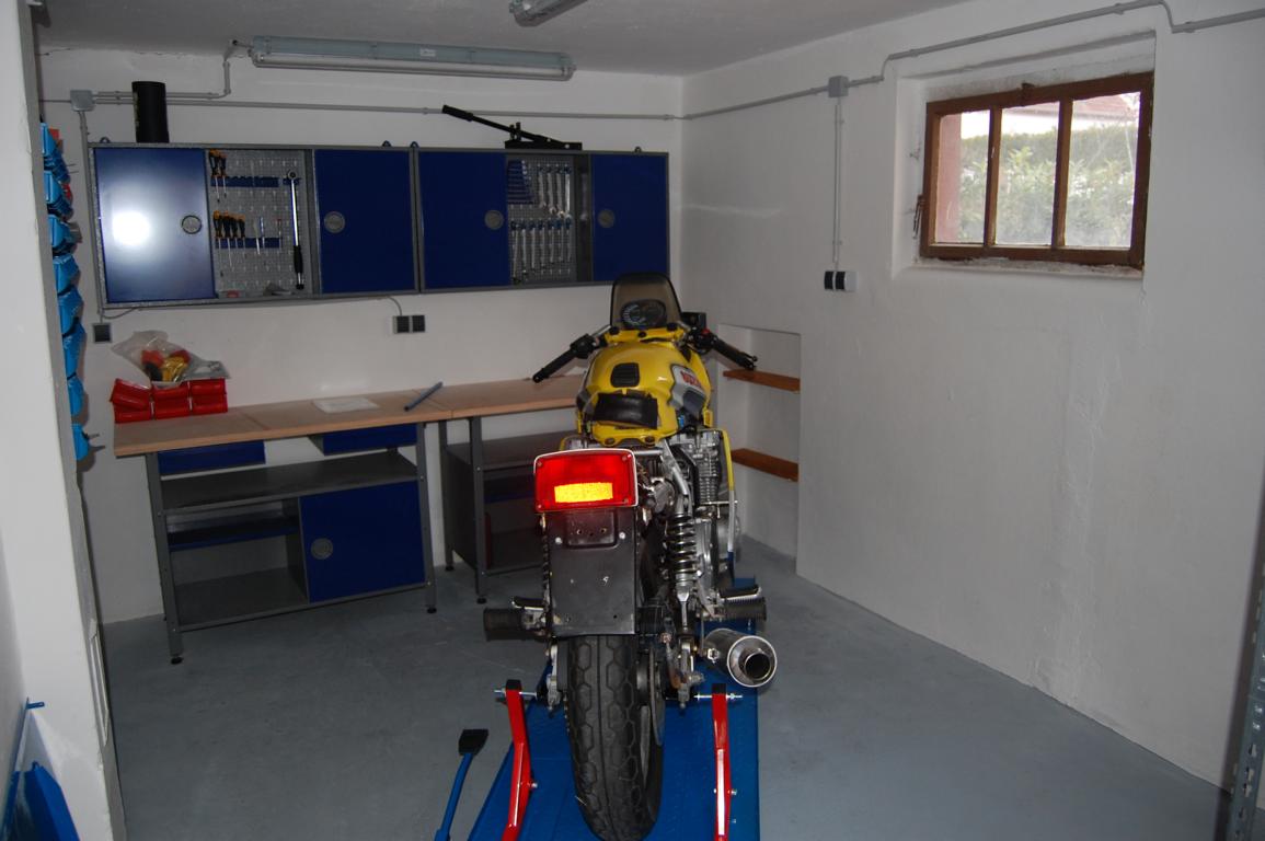 Dann noch die Garage direkt am Haus, hier schraube ich, wenn das Motorrad da ist.