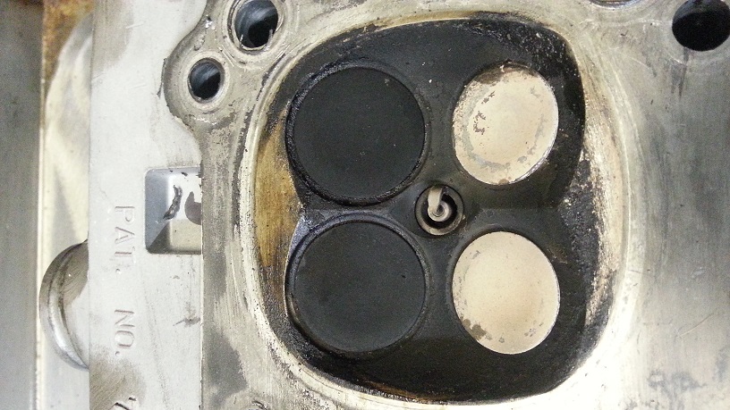Zylinder Nr. 3 hat wohl etwas viel Öl gehabt...sieht sehr komisch aus....Ventile völlig verölt und verkokelt....Kerze genauso