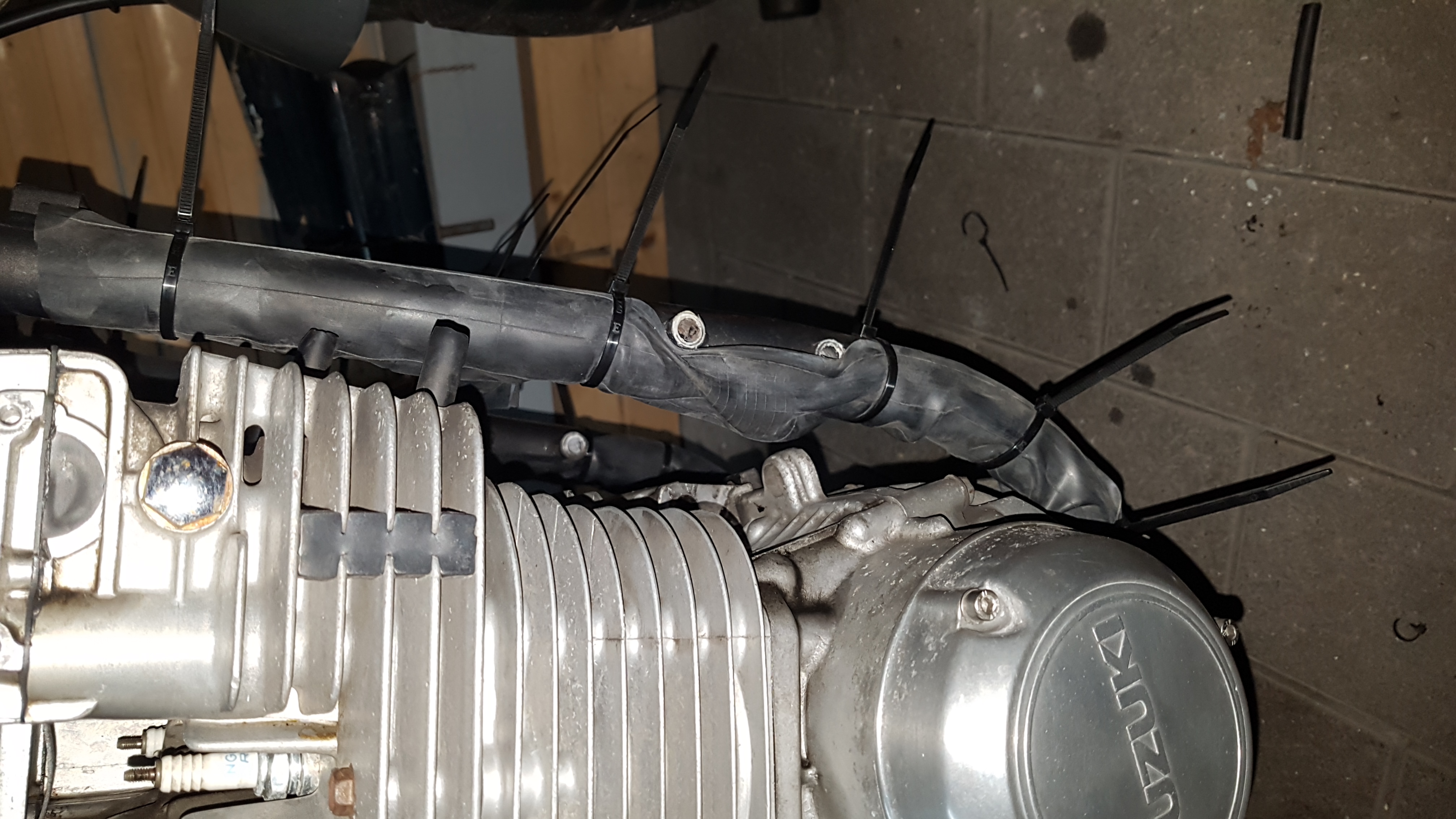 Vor dem Einbau habe ich dann alle Rahmenrohre spiralförmig umwickelt und mit Klebeband gesichert..