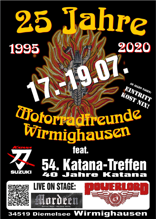 Für alle, die auch mal cool aussehen wollen und sich ihrer Neigung zu japanischem Alteisen nicht schämen, gibt es diesmal hochwertige Poloshirts. In freundlichem Schwarz mit zweifarbigem Rückenaufdruck „54. Katanatreffen Wirmighausen“ mit Katana-Logo und nochmal dem Katana-Logo auf der Brust mit Schriftzug „40 Jahre Katana“. Das Teil ist auf Vorbestellung für läppische 25 € zu haben. Bitte bei Anmeldung die gewünschte Größe in der Liste eintragen und die Kohle auf das Konto IBAN : DE76 5236 0059 0000 2271 61 – Angelika Hocke überweisen.