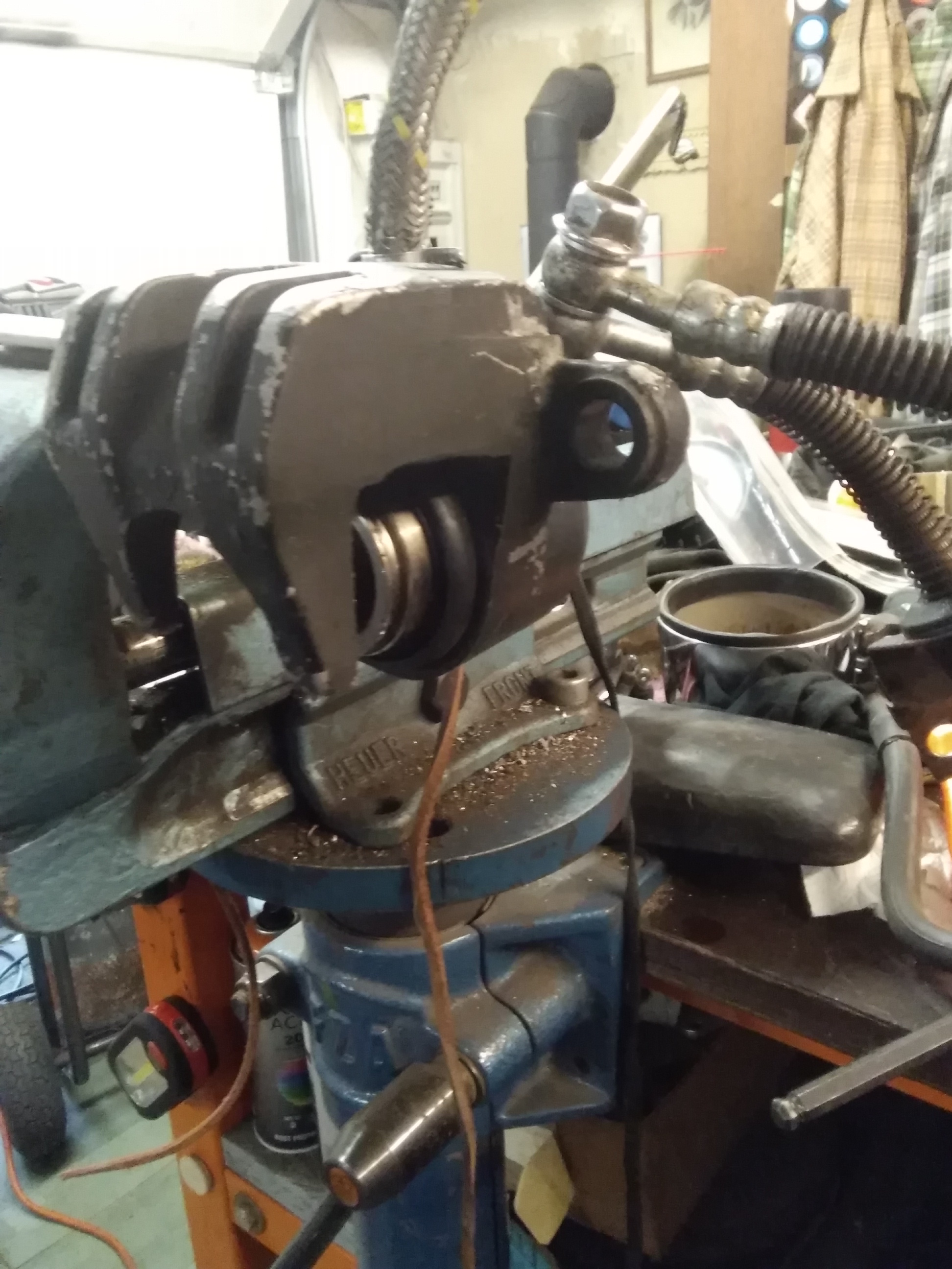 Hab jetzt beschlossen, meine Bremssättel aufzuhübschen. Aber schon beim Kolben raus ziehen, bin ich gescheitert. Alles versottet, in meinem Bestand, wollte ja nicht die fahrenden Kisten auseinander nehmen. Luft ist des Rätsels Lösung. Also Bremssattel in den Schraubstock gespannt, den Zugang blind gemacht, und Entlüftungsschraube geöffnet. Hab dann ein stahlummantelten Schlauch auf die Entlüftungsschraube gesetzt und verschraubt. Dann hab ich von einem alten Schlauch das Ventil rausgeschnitten, und auf der anderen Seite vom Schlauch eingesetzt. So jetzt Luft vom Kompressor ran. Fertig. Falls das jemand nach bauen will, etwas Vorsicht walten lassen. Handschuhe und Brille sind ratsam, falls noch Bremsflüssigkeit vorhanden ist. Und ist zu Luft da, fliegt der Kolben wie ein Geschoss