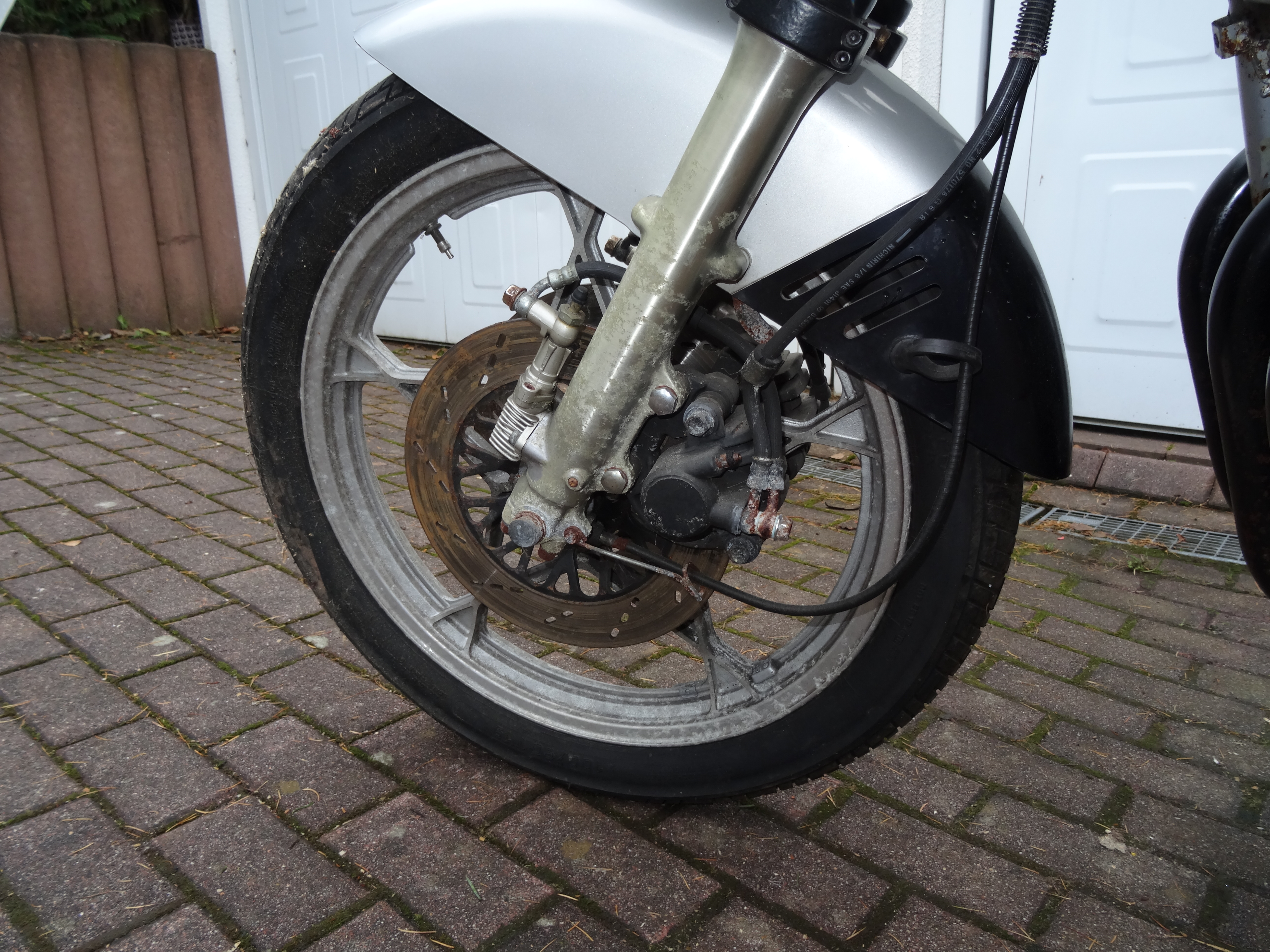 Also nun mal den Rahmen hübsch pulverbeschichten lassen. Das passende Katanasilber gab´s leider nicht, dafür ein etwas stärker reflektierendes. Glänzt wunderschön bei Sonnenschein. Den schönen Rahmen neben die Räder gestellt ergab zweifelsfrei: Auch die müssen lackiert werden. Unter dem Klarlack der Räder hatte sich Korrosion gebildet. Sah schlimm hässlich aus. Also erstmal ins Internet, schaun, wie man die Radlager rausbekommt. Werkzeug bestellt und rausklopfen. Auch die Räder erstmal pulverbeschichten. Spätestens jetzt hatte mich der Originalvirus befallen. Geld und Zeit spielen keine Rolle. Ob das Ding fährt, ist auch egal, Hauptsache original. Die Räder waren im Original lackiert, die Flanken aber geschliffen. Also hab ich die Flanken polieren lassen, um möglichst nahe an das Original zu kommen. Hab mich ein wenig geärgert, dass der Farbton nicht ganz dem Originalfarbton entspricht.