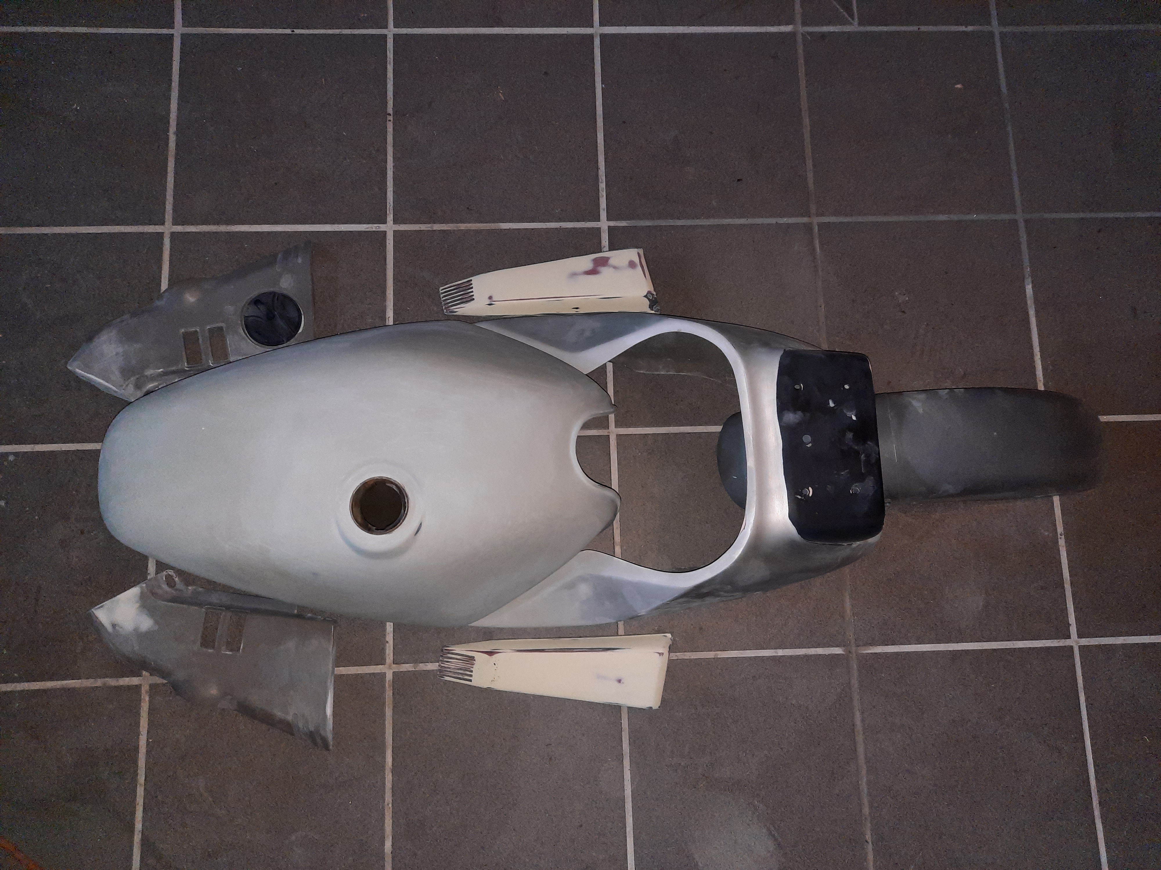 die schwarzen Anbauteile sind natürlich fertig, und zum großen Teil montiert. Kabelstrang ist eingebaut. Stummel und Motordeckel sind aufgearbeitet und Klarlackbeschichtet. Bilder folgen...
