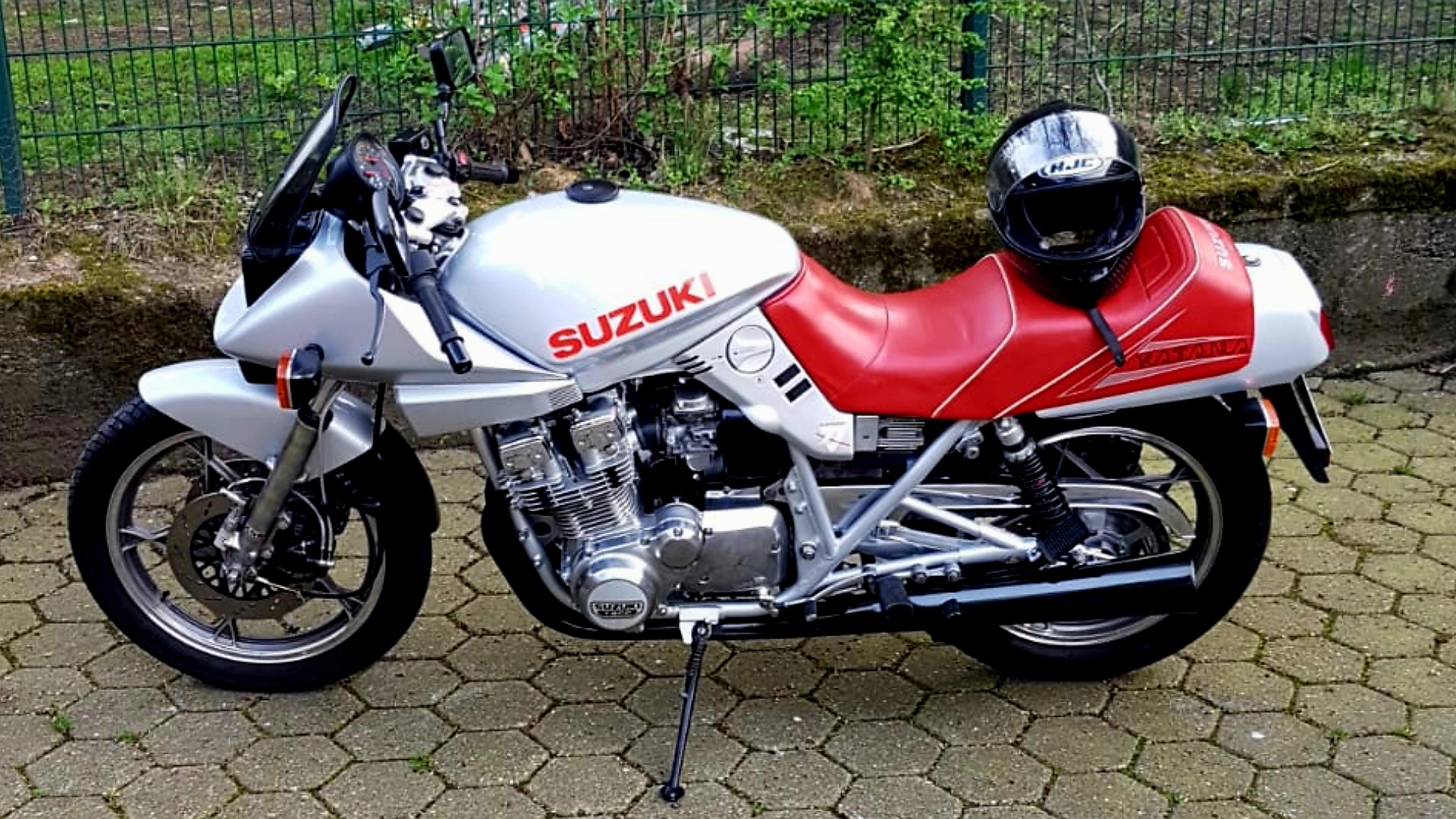 Ich habe 1984 auf einer GSX 650 G mit Katanas angefangen und immer von einer großen geträumt. Nach der Katana kamen noch viele Mopeds, erst eine 750er Big, dann die 800er, eine GS500E für meine Frau, für mich eine 1200er Bandit (GV75), aktuell eine B King und noch eine XF650.