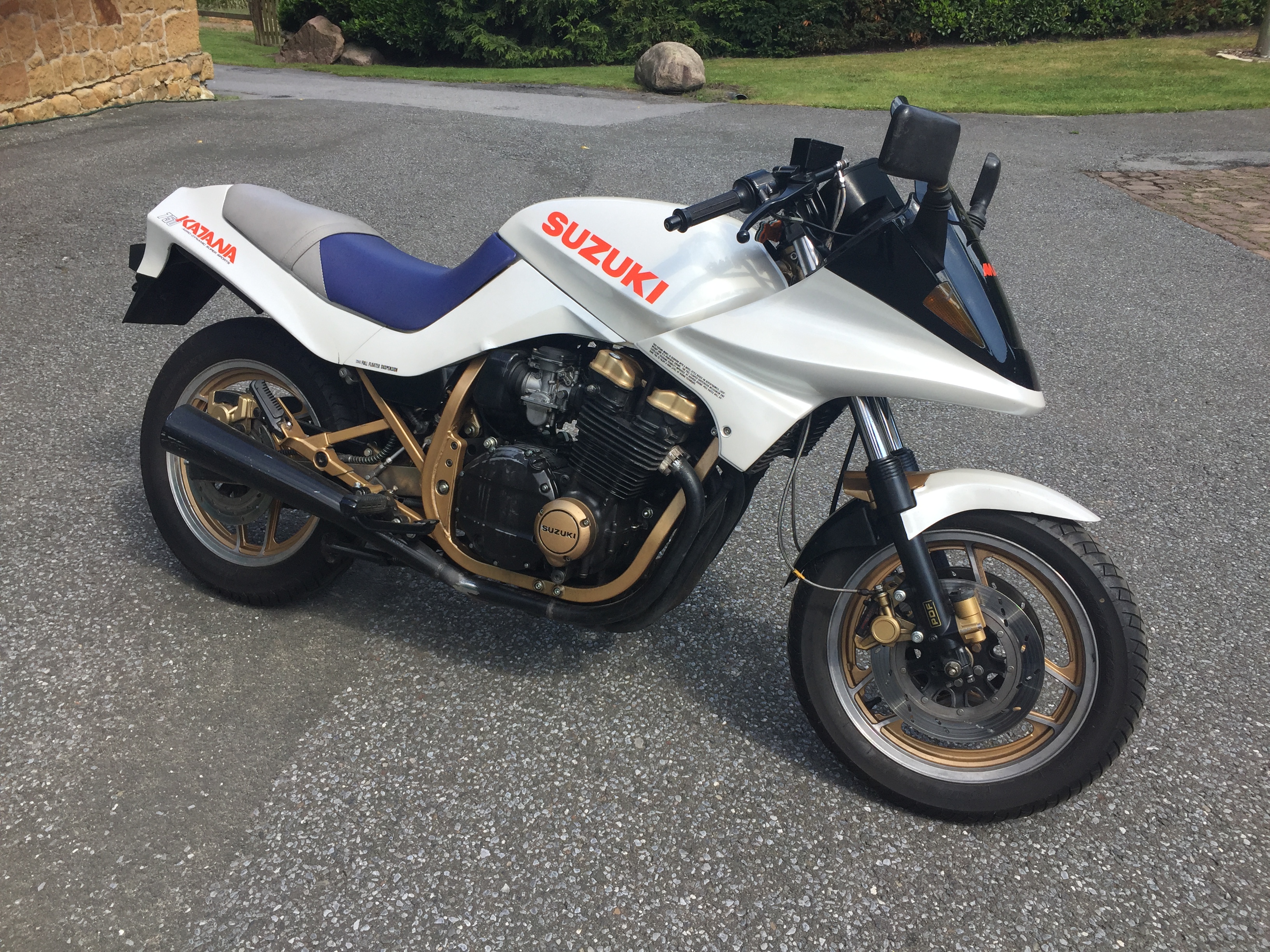 Im Jahr 2001 bin ich dann wieder vom Katana-Virus befallen worden und habe ich mir eine 750er Katana zugelegt, die ich dann erstmal komplett zerlegt und wiederaufgebaut habe ( KLICK )