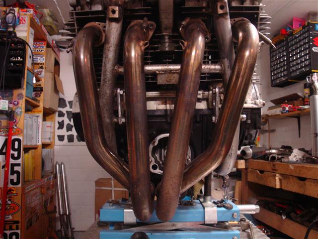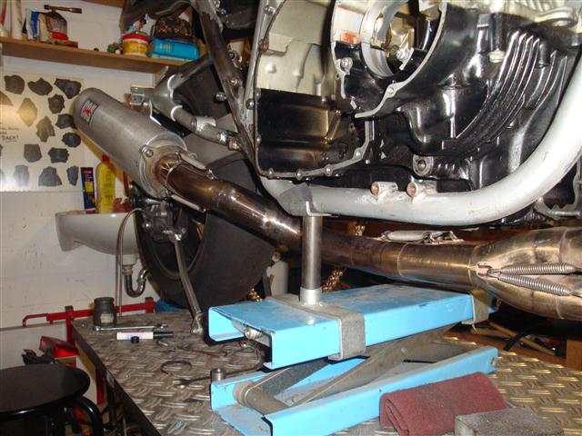 Fazit: Krümmeranlage stößt an das Rahmenquerrohr an und ist nur mit etwas größerem Aufwand, d.h. Umschweißarbeiten zu verwenden. Hab ich aber keine Lust zu gehabt, außerdem ist die schicke neue Tröte dazu eigentlich zu schade.