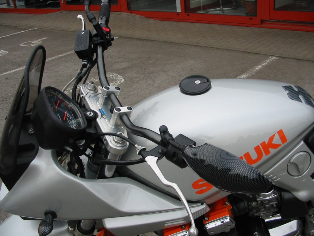 GSX R Telegabel vorn (GV73C) mit Wilbers Federn, 17" GSX R Räder mit den dazugehörigen Bremsen vorn und hinten, das Speerheck soll beibehalten werden, Tarozzi Fußrastenanlage, Laser 4 in 1, kleinere Blinker, und wieder silber machen so sie original war.