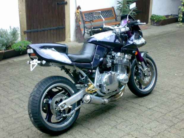 Heck: Monofederbeinumbau (ausgführt vor ca. 10 Jahren von Werner Katana Nürnberg) aktuell mit K&J und 5,5 Zoll GSXR felge mit 180er.