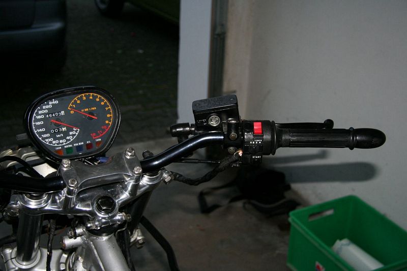 Das wären im Groben: eine Gabelbrücke von der GSX 1100 E; ein Superbikelenker von Spiegler; einen Kupplungszug von der GSX 1100; eine Bremspumpe von einer Bandit.