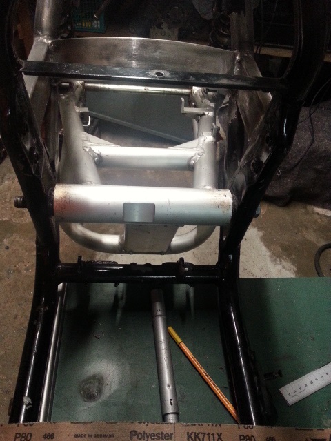 ZRX Schwinge angepasst....sitzt jetzt schön mittig und die Federbeine stehen auch schön gerade