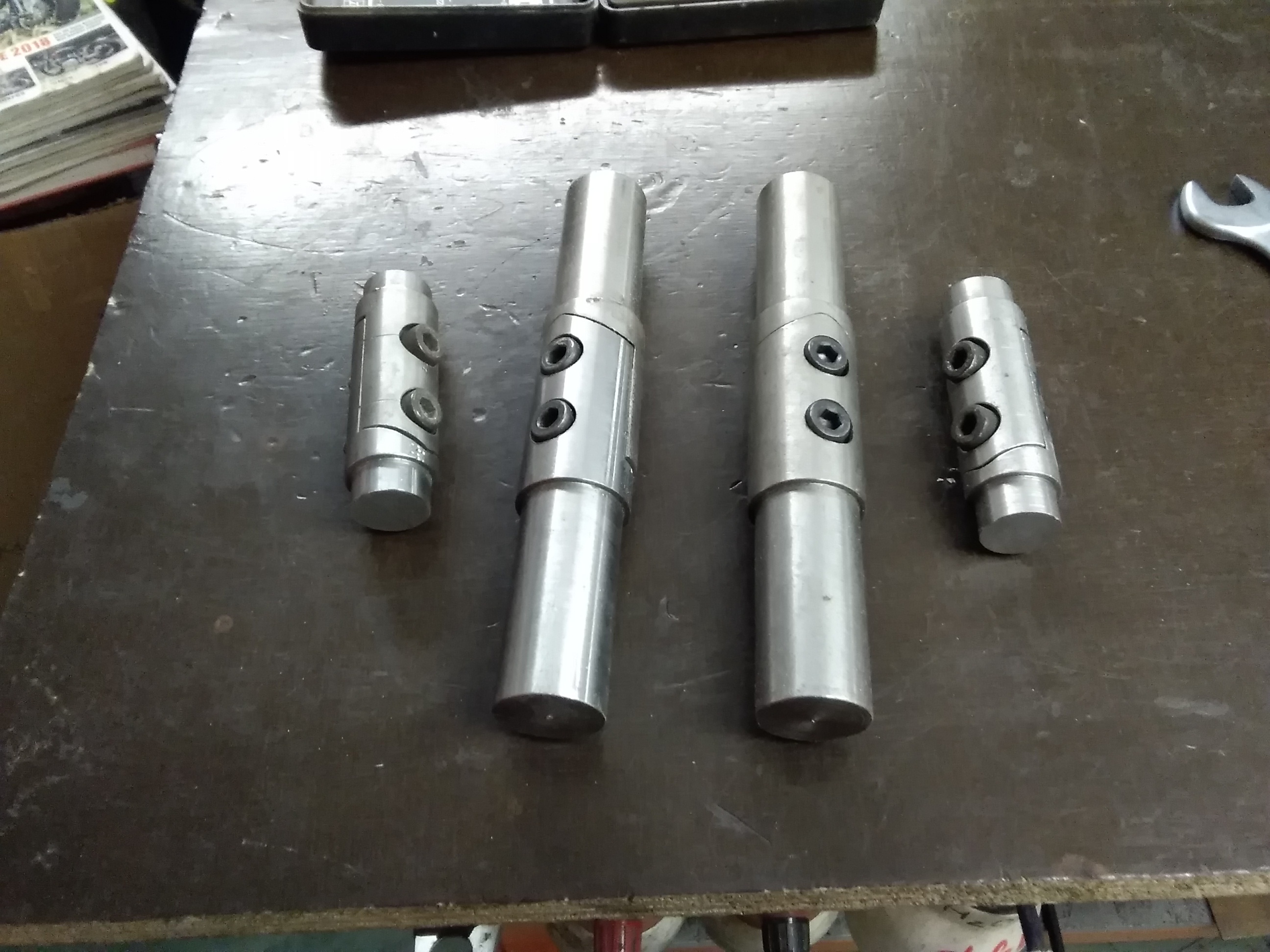 Hab mal wieder gebaut und mit Gabel weiter gemacht. Ein wilder Mix aus 4verschiedenen Suzukis musste her halten. O/u Gabelbrücke, Standrohre von der Trude, wegen der Länge, Stummel Gsx /r, Tauchrohre und Flügel von der 900 RF, Bremse und Vorderrad 11 EF. Vorher gemessen, ob die Gabel sich im Hilfsrahmen dreht. Einbauen. Die Freude war aber nur ganz ganz kurz. Beim ersten Lenkeinschlag stieß nicht die Gabel am Hilfsrahmen an, sondern die untere Gabelbrücke am Stellmotor der Klappi. MÄNNO!! Der Supermarkt war offen und verkauft Bier. Wat für'n Glück