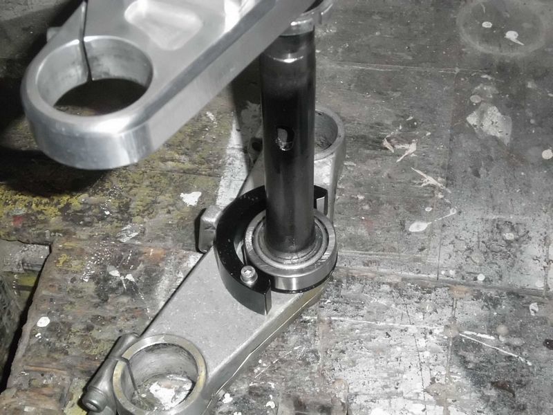 Das Gabeljoch hat dann mal eine neues Lager bekommen und das Loch für´s Lenkradschloss ist gebohrt. Und alles dann einbaufertig gemacht ...