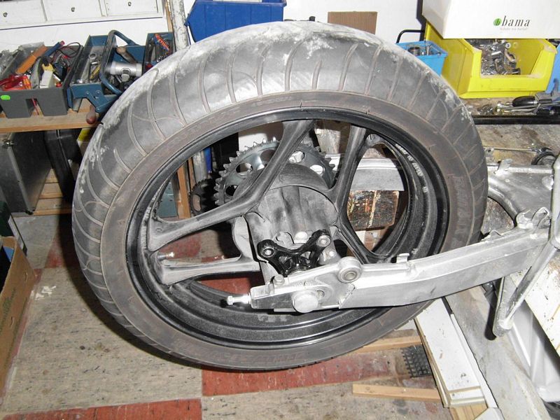 Ich habe in der letzten Woche noch eine hintere 4-Zoll Felge von der Knicker bekommen. Ursprünglich wollte ich die 3,5-Zoll Felge der 750er verbauen ... aber kleine Änderungen gibt es immer wieder.