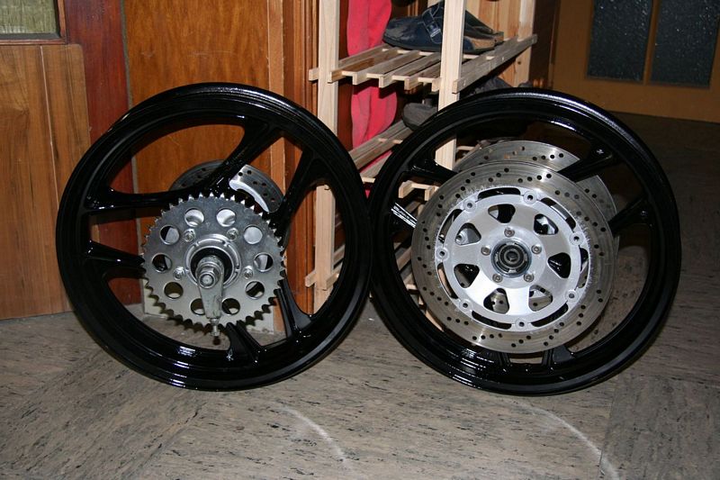 Derzeit bereite ich die Felgen auf eine Strahlkur und anschließendem Pulverbeschichten vor. Mal schauen wann die Räder dann zurück kommen.