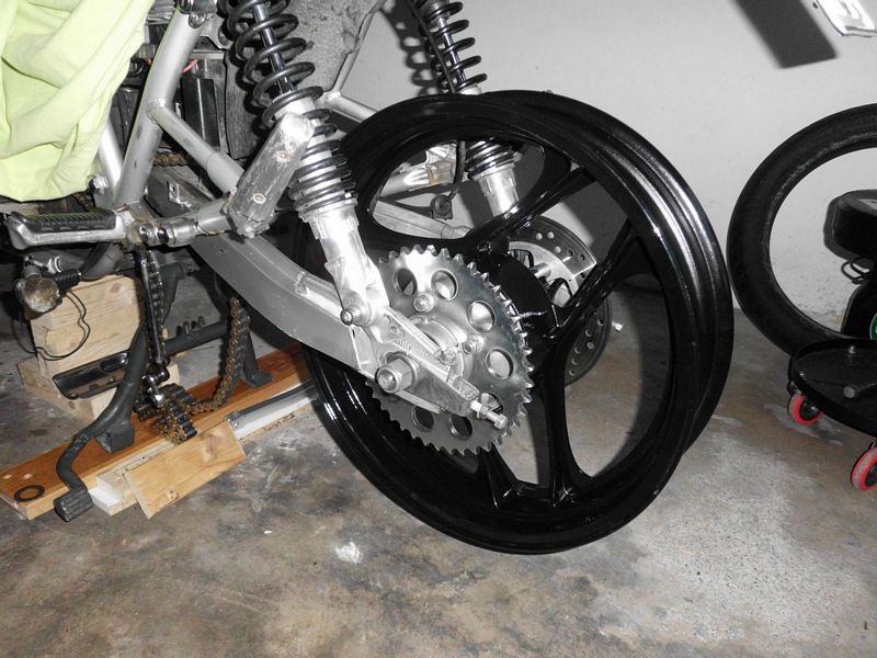So , heute mal schnell die Felgen ins Mopped gesteckt. Alles passt, wackelt (dreht sich) und hat Luft