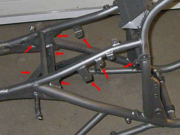 Das Ergebnis: Die Zusatzhalter und Knotenbleche am Rahmen: Elektrik: Es sind einzelne Alubleche (Verchromt), der Kabelstrang wurde Angepasst und entsprecht verlegt.