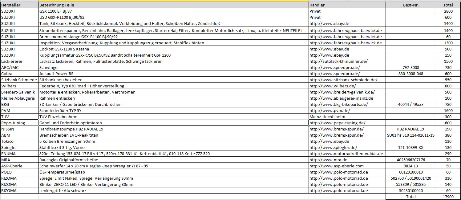 Deine Teileliste liest sich ja, als wenn deine Kati mit 24 Karat Blattgold überzogen ist, Alter Schwede