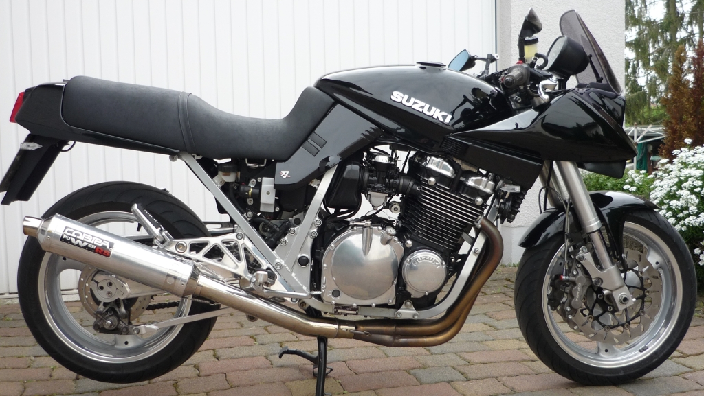 ja muss auch echt sagen das Moped lässt sich richtig gut fahren mit der GSX-R Gabel und dem Wilbers Federbein