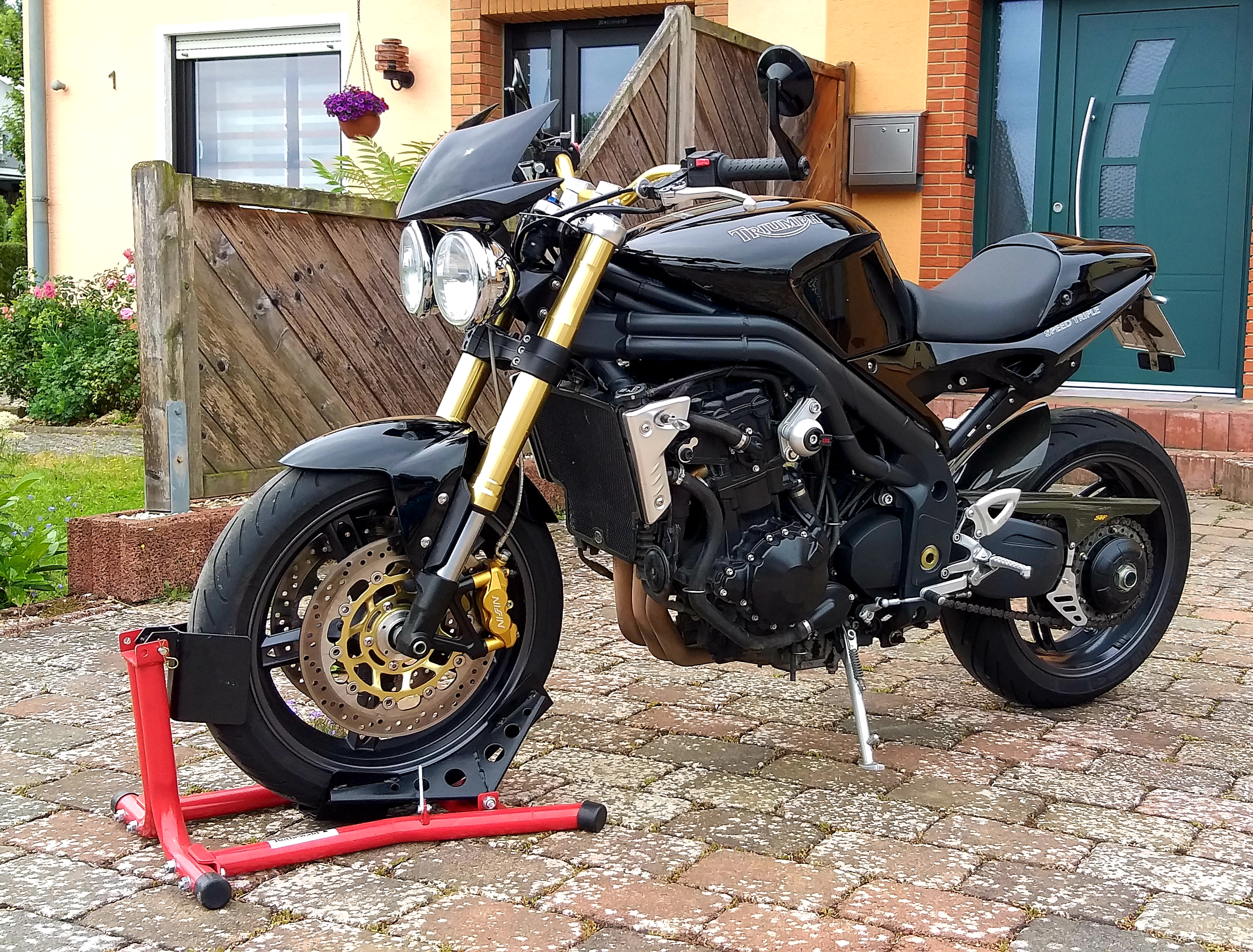 Habe mich dann durch sportlichere und leichtere Bikes durchprobiert. Jetzt bin ich bei dem für mich fast perfektem Bike der Triumph Speed Triple 1050 gelandet. Daneben habe ich mit einer 640er KTM meine Vorliebe für Supermoto entdeckt. Da habe ich mich mittlerweile für eine etwas angenehmer zu fahrende und kultigere XT600 entschieden, die ich zur SuMo umgebaut habe.